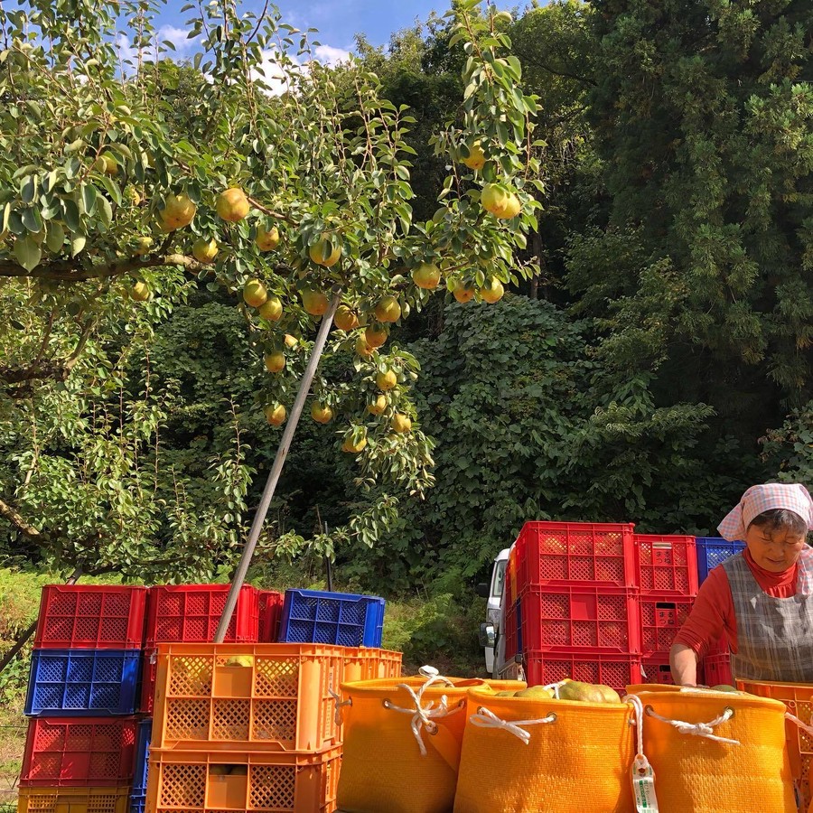 ・遅もぎ収穫果で、香りと甘さが際立っています。樹上完熟収穫した果実の香りと甘さを楽しみください。
