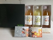 3種のりんごのブレンド・ふじ・ラフランスを1本ずつ、3本入りボックスでお届けします。